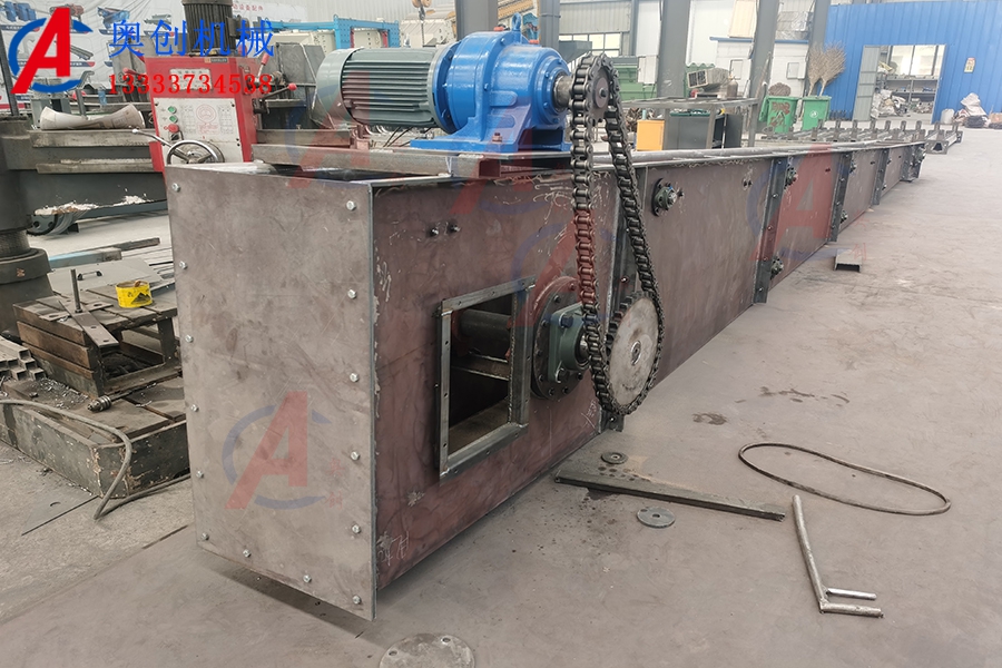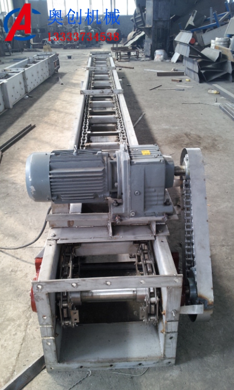 刮板輸送機介紹:刮板輸送機是輸送粉塵狀、小顆粒及塊狀等散狀物料的連續輸送設備,可以水平、傾斜和垂直輸...